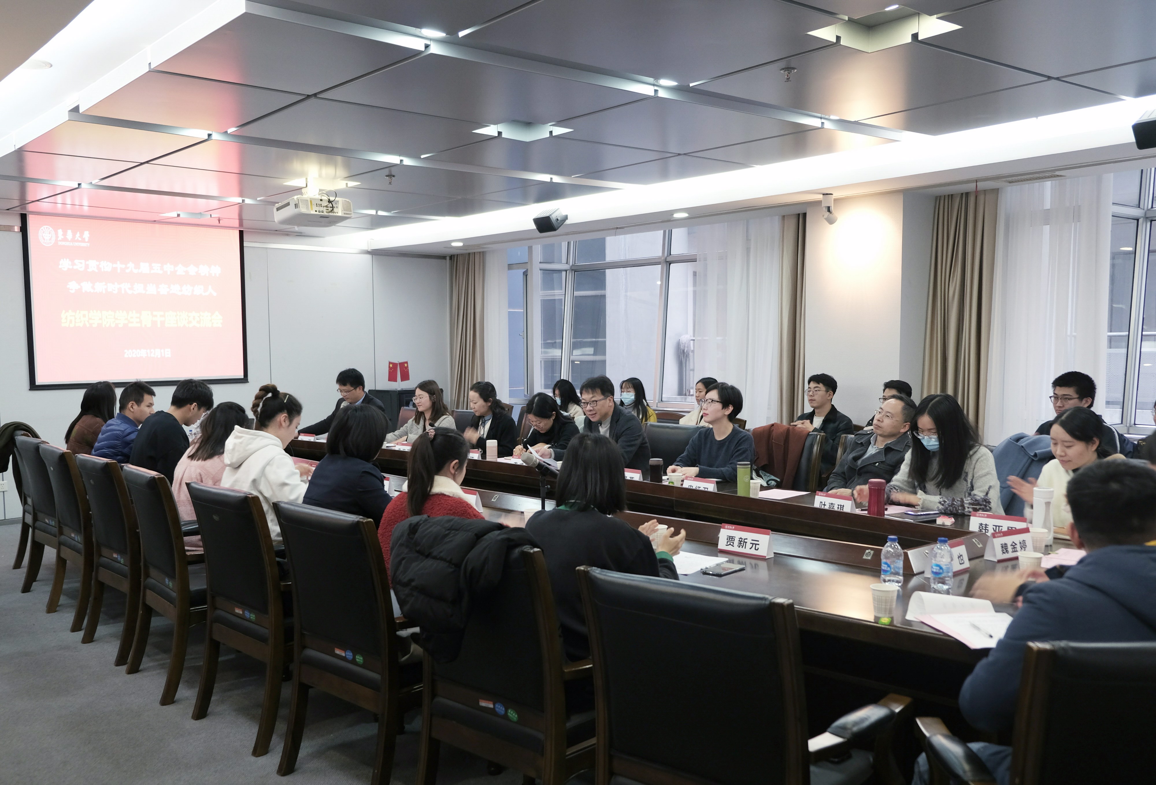为深入学习贯彻党的十九届五中全会精神,充分发挥学生骨干的示范带动作用,教育引导广大党员和团员青年把智慧和力量凝聚到“十四五”发展新征程和纺织一流学科建设上来,12月1日,澳门线上赌场 党委举办“学习贯彻十九届五中全会精神,争做新时代担当奋进纺织人”学生骨干座谈交流会。学院党委书记李成龙、党委副书记刘雯玮与各学生党支部、团学组织等青年师生代表参与本次活动。