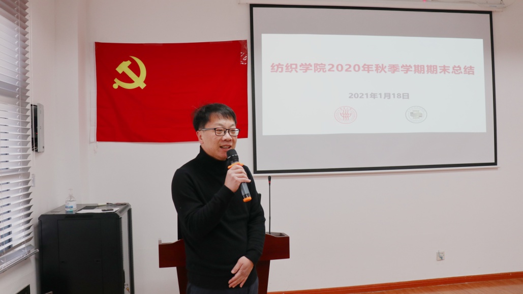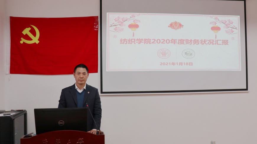 顾伯洪院长首先代表学院党政班子汇报学院2020年工作。总结报告分党建引领、制度建设、一流学科、“十四五”发展规划、第五轮学科评估、学生工作、人才培养(本科和研究生)、科学研究、师资队伍、国际合作、基础建设、工会组织等方面进行汇报,对学院全体教师2020年的工作给予了充分的肯定并希望在2021“十四五”的开局之年坚定全面建成纺织领域的世界一流学科的愿景目标,强化党建引领和学科统筹作用,推进学院高质量发展。