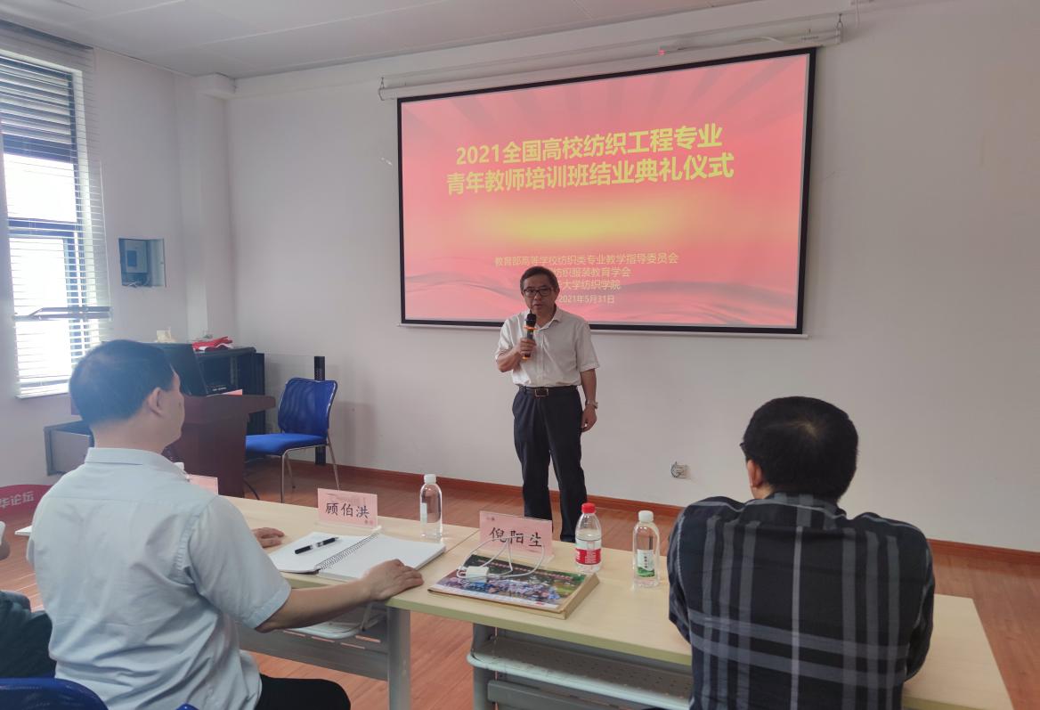 近日,由中国纺织服装教育学会、教育部高等学校纺织类专业教学指导委员会主办,澳门线上赌场 承办的2021年纺织工程专业青年教师培训班在我校举行。副校长舒慧生出席开班仪式;中国纺织服装教育学会执行会长倪阳生出席结业典礼;教务处主持工作副处长杨旭东、教育部纺织类教学指导委员会主任、澳门线上赌场 郁崇文教授及澳门线上赌场 相关领导参加了培训班的有关活动。