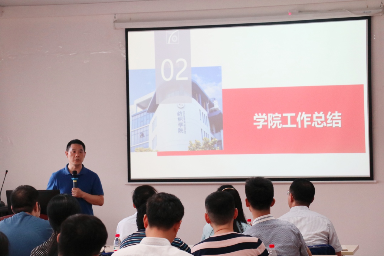 顾伯洪分析了我校的排名以及纺织科学与工程在全国学科中的排名,从宏观角度为全员师生分析了学科和学院目前的发展状况。顾伯洪对学院本学期的工作进行了重点总结回顾,从学院教师、学生等方面对学院人力资源进行了详细分析,并对党建工作、学院经费、学生工作、学科建设、本科教育、研究生教育、科学研究、平台建设、实验室安全工作、实践教学、仪器设备管理、实验室管理、标准制定、国际合作、社会服务和校庆工作等方面进行了汇报。