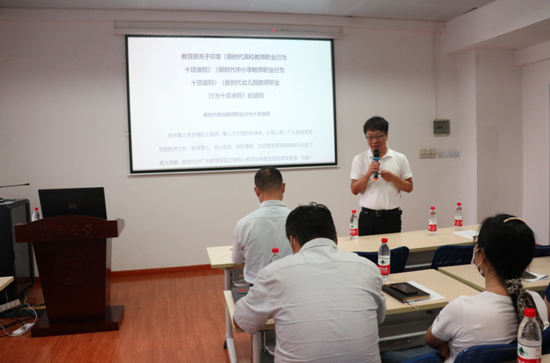李成龙在主持中强调面对学院改革发展任务,领导班子要以更高站位、更高标准,凝心聚力、攻坚克难,切实将各项工作抓实抓好抓出成效。广大教师要以时不我待的紧迫感,更加积极主动地投入工作,为学院改革发展赋能助力。李成龙强调要加强师德师风建设,全院教师要弘扬高尚师德,力行师德规范。